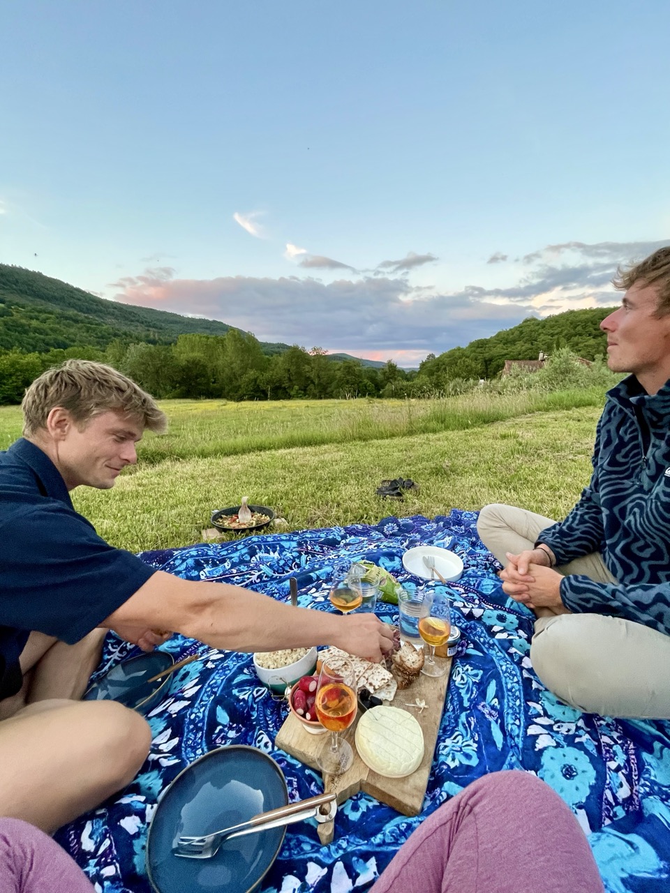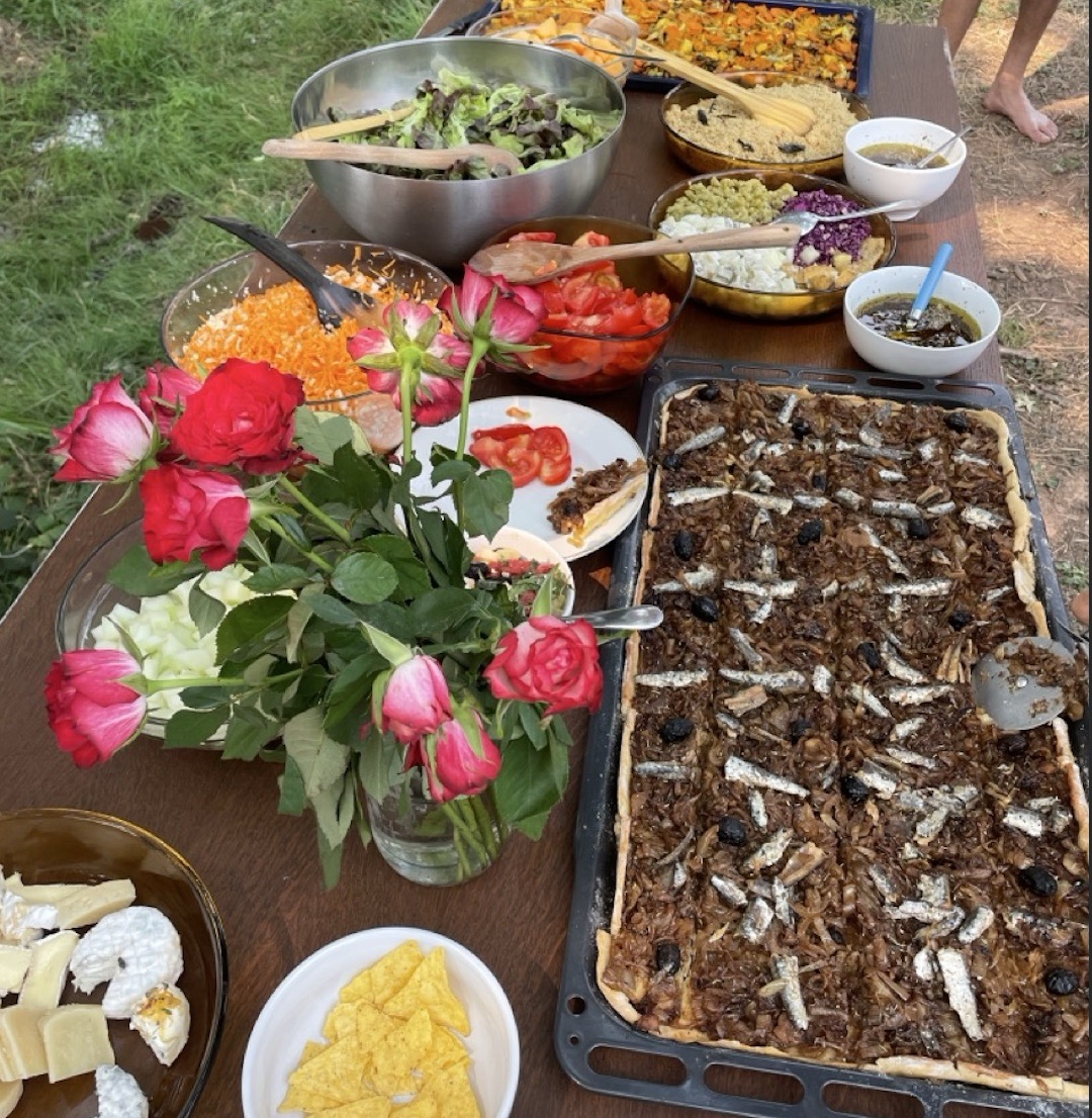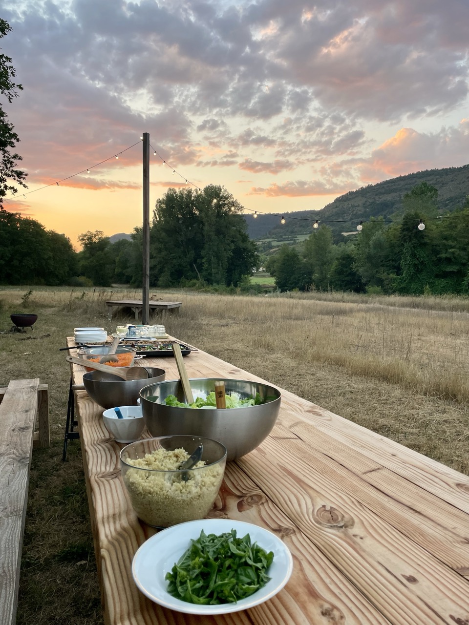 🍽️ Midi Tablée partagée. On mange bien, on échange, on rit. Ou tu emportes ton assiette au bord de la rivière pour un moment au calme.