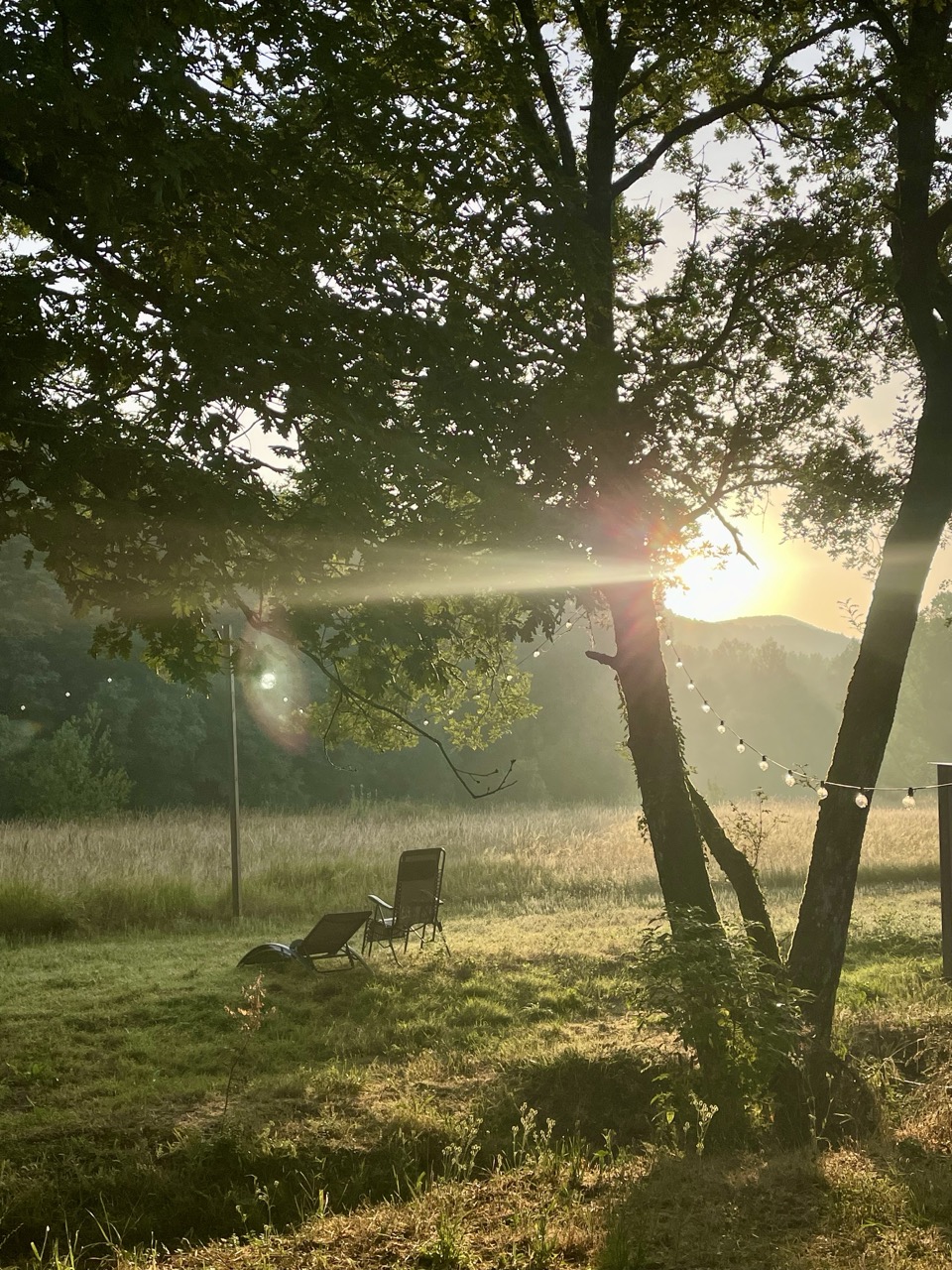 Repas partagés en grande tablée ou en plus petit comité · Rencontres et échanges enrichissants · Temps pour soi, repos, baignades à la rivière · Musique & concerts live · Feu de camp · Ciel étoilé…