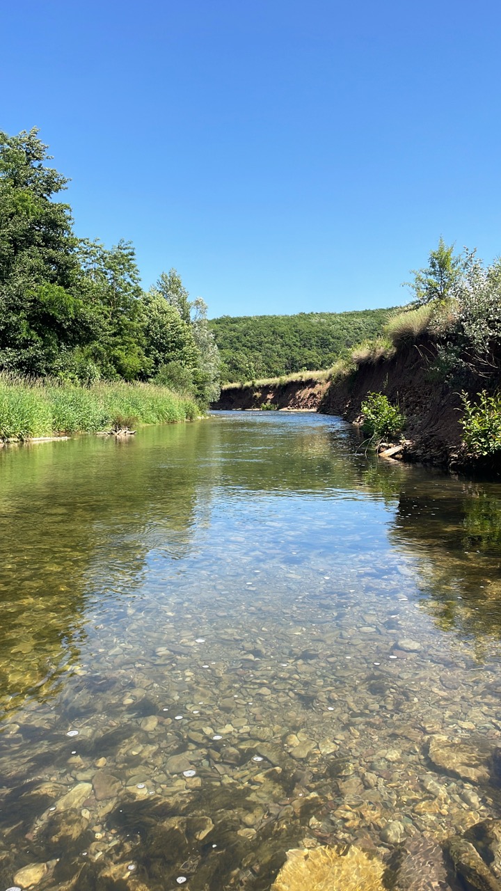 Le genre d’endroit où tu arrives et ton système nerveux se calme en 10 minutes. De la nature partout. Du calme. De l’espace. Et cette sensation rare d’être exactement où tu dois être. Une sublime rivière coule le long de la propriété, belle à contempler et délicieuse à s’y baigner.