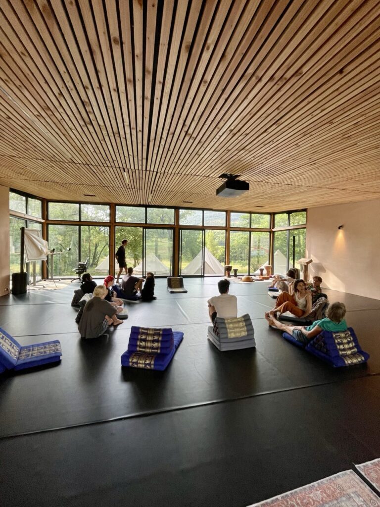 Un endroit où tu peux te poser sous un arbre avec un bouquin… et 2 heures plus tard assister à une conférence qui te donne des frissons. Où tu bouges ton corps le matin, tu apprends quelque chose de nouveau l’après-midi, et le soir tu ris sous les étoiles avec des gens que tu ne connaissais pas 48h avant, mais qui deviennent importants.
